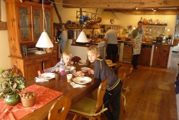 Neugliederung der Räume; Verarbeitung von rein ökologischen Materialien und Verknüpfung mit moderner Energietechnik. Die Außenanlagen erhielten ein komplett neues Gesicht durch den Wegriss einer Maschinenhalle und den Durchbruch innerhalb einer Scheune. Maurer- und Pflasterarbeiten mit historischen Baumaterialien, wie alten Muschelkalksteinen, Sandsteingewänden, alten Dachziegeln.